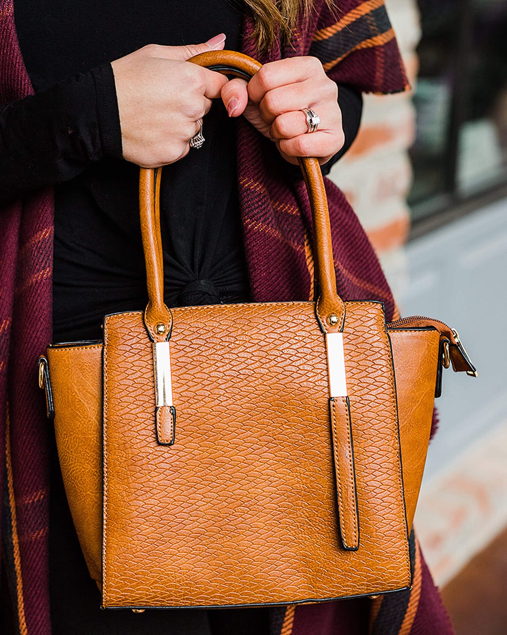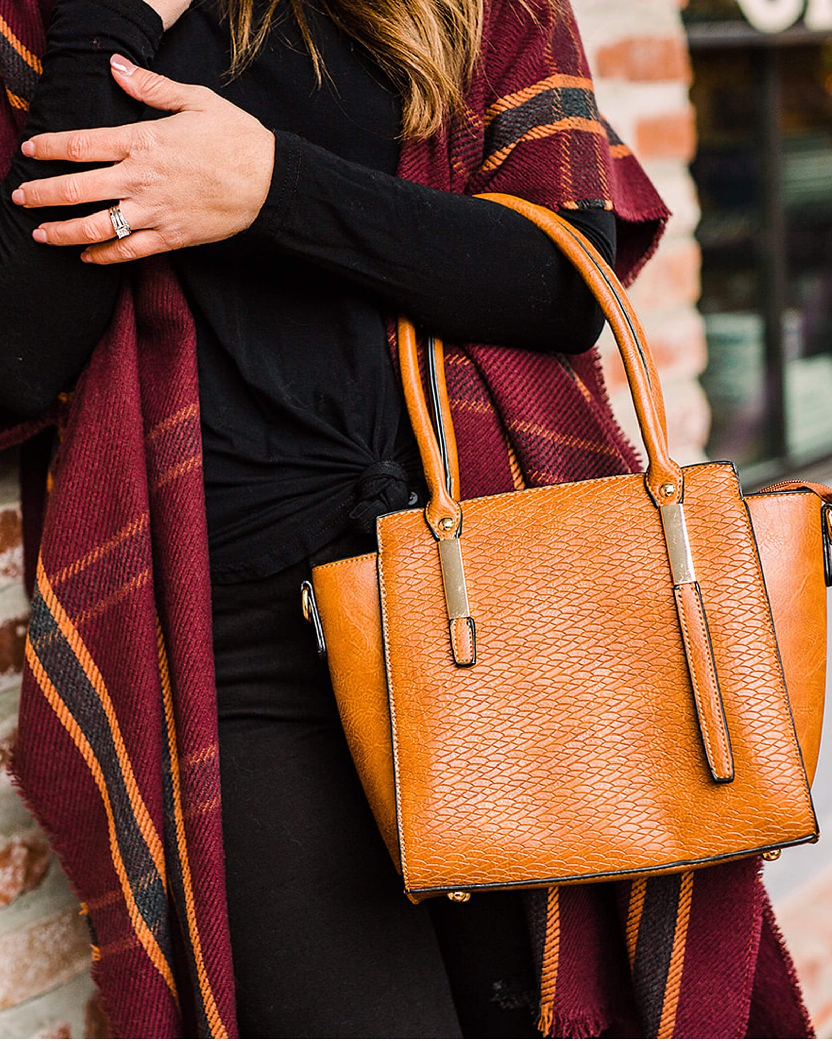We are in love with this mini satchel that is the perfect color for Fall! This is sure to be your new go-to accessory this holiday season.